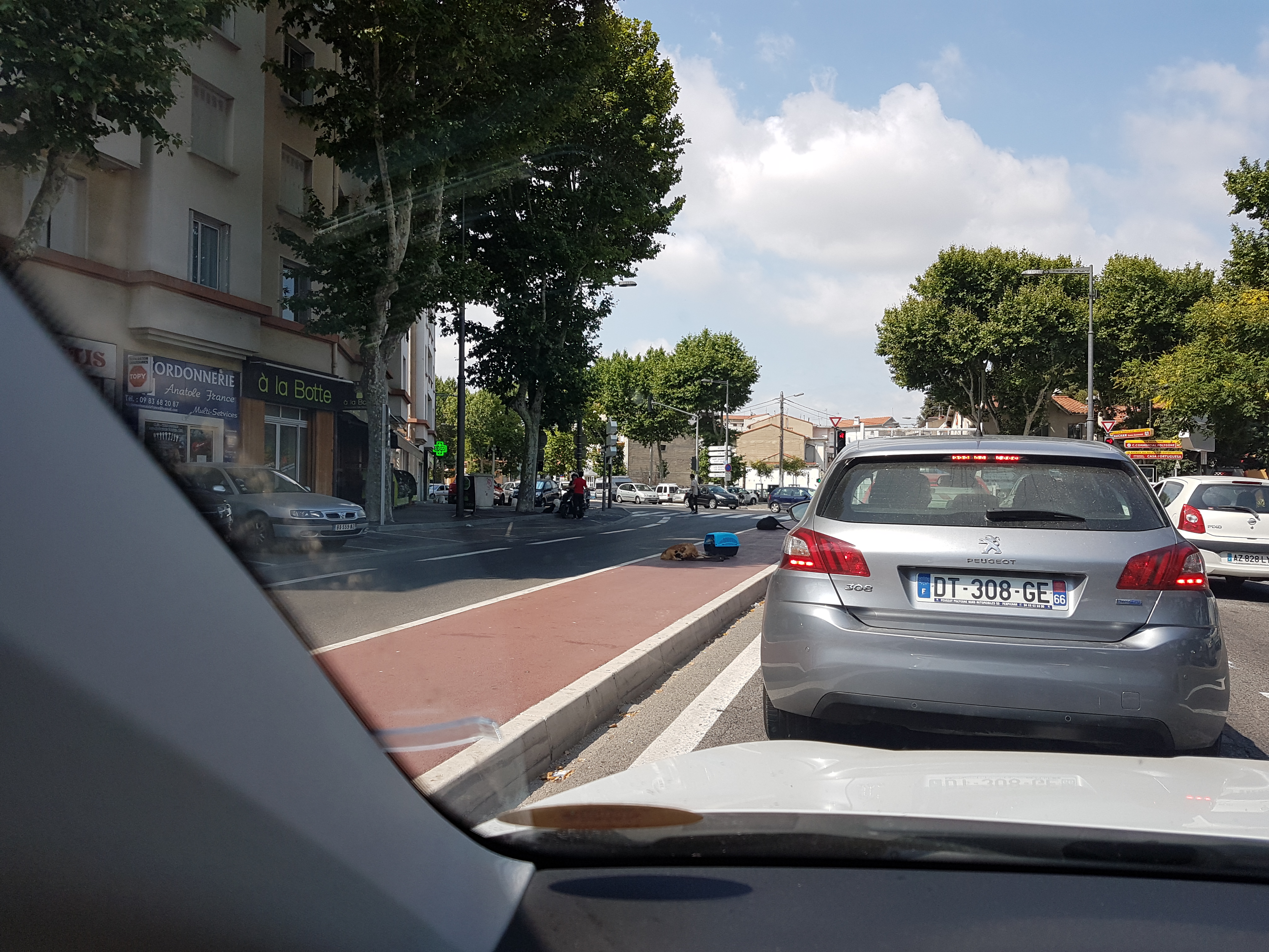 Perpignanin reissulla nähtyä- koiraemo pentuineen 😦