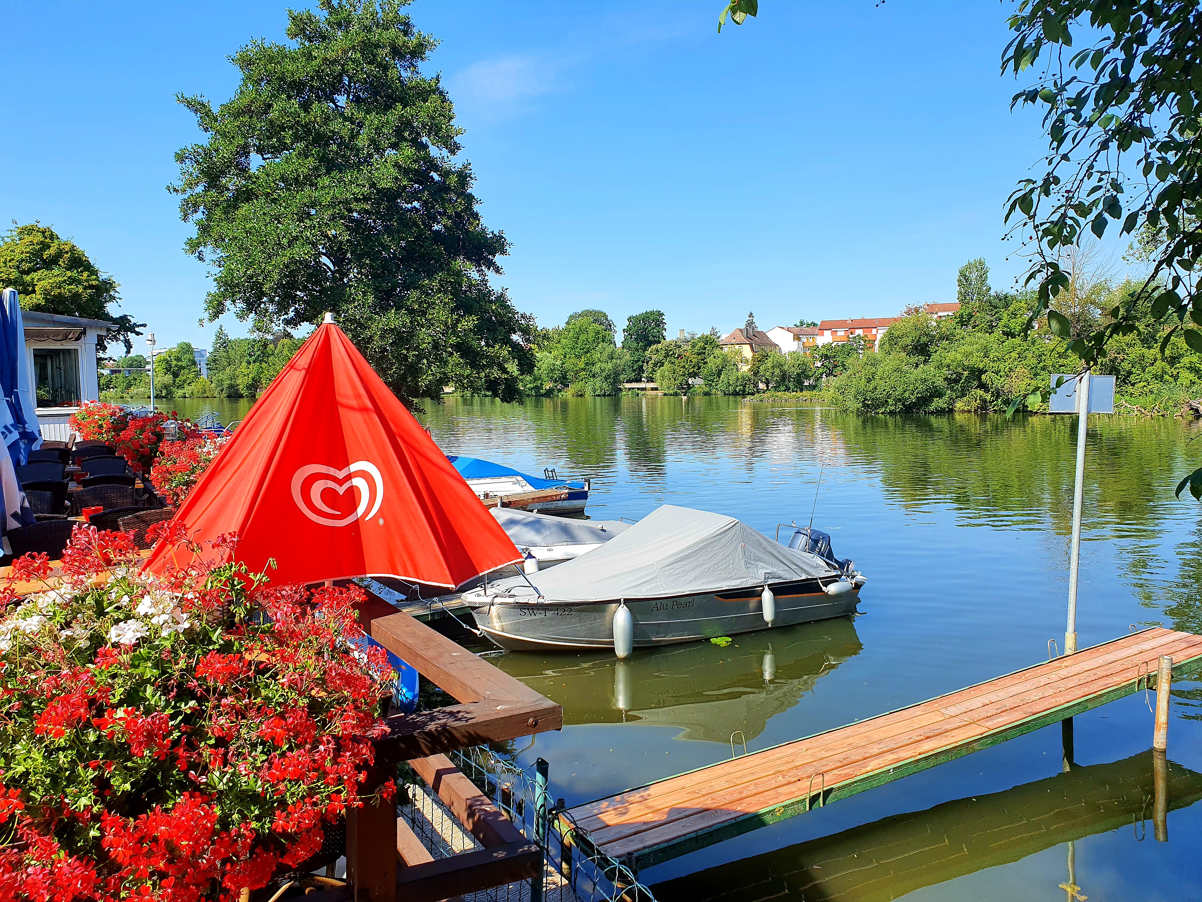 Campingplatz ”Schifer Turm” – sijainti joen varressa – näkymä ravintolasta