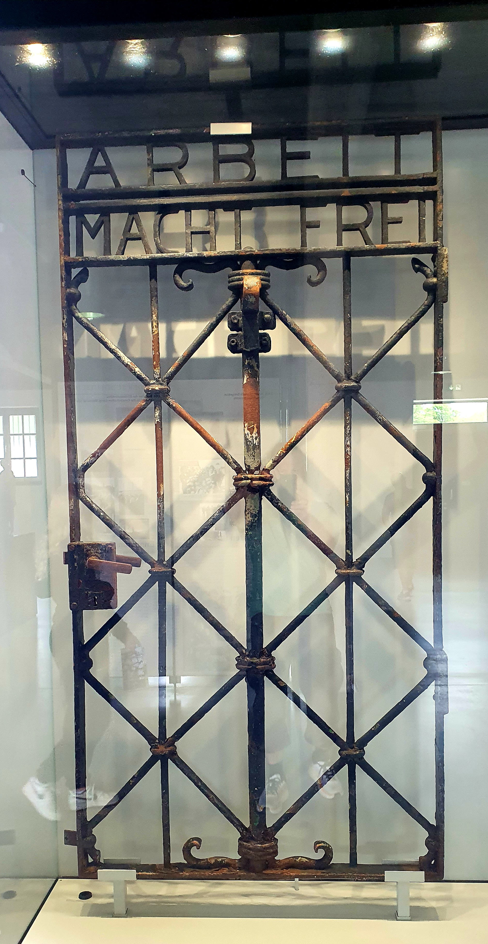Dachau – alkuperäinen portti mikä varastettiin ja löydettiin. Nyt museossa ja sisäänkäynnissä oleva on kopio.