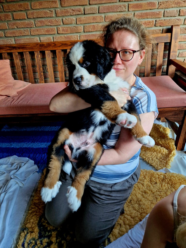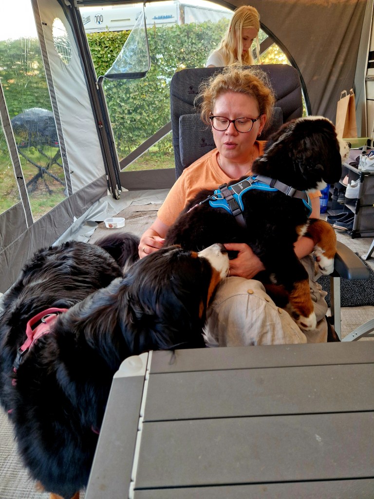 Lentäen pennun tuonti Suomeen onnistuisi ilman rokotustakin, mutta me olimme liikenteessä autolla matkailuvaunun kanssa. Varmistin Ruokavirastosta henkilökohtaisesti, että myös suora laivayhteys Saksasta Suomeen täyttää määräykset. Lentokoneella tuonnissa bernin kanssa on se haaste, että pentu ja kuljetuslaatikko saavat yhteensä painaa maksimissaan 8 kg, jos pennun haluaa matkustamoon. Ruumassa kuljettamiseen eivät monet kasvattajat suostu, enkä suostuisi kyllä itsekään.