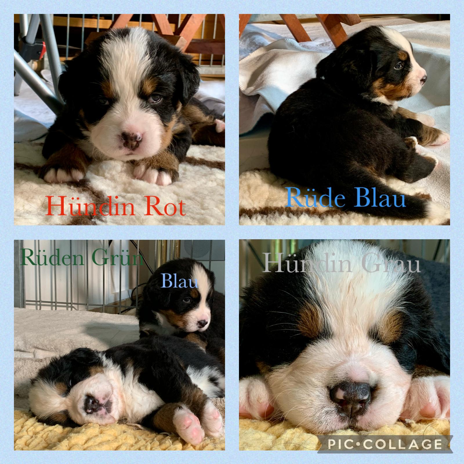 Pennut nimetty sukupuolen ja pantojen värin mukaan. Fredde on Rüden Grün © Jürgen Kleinwächter