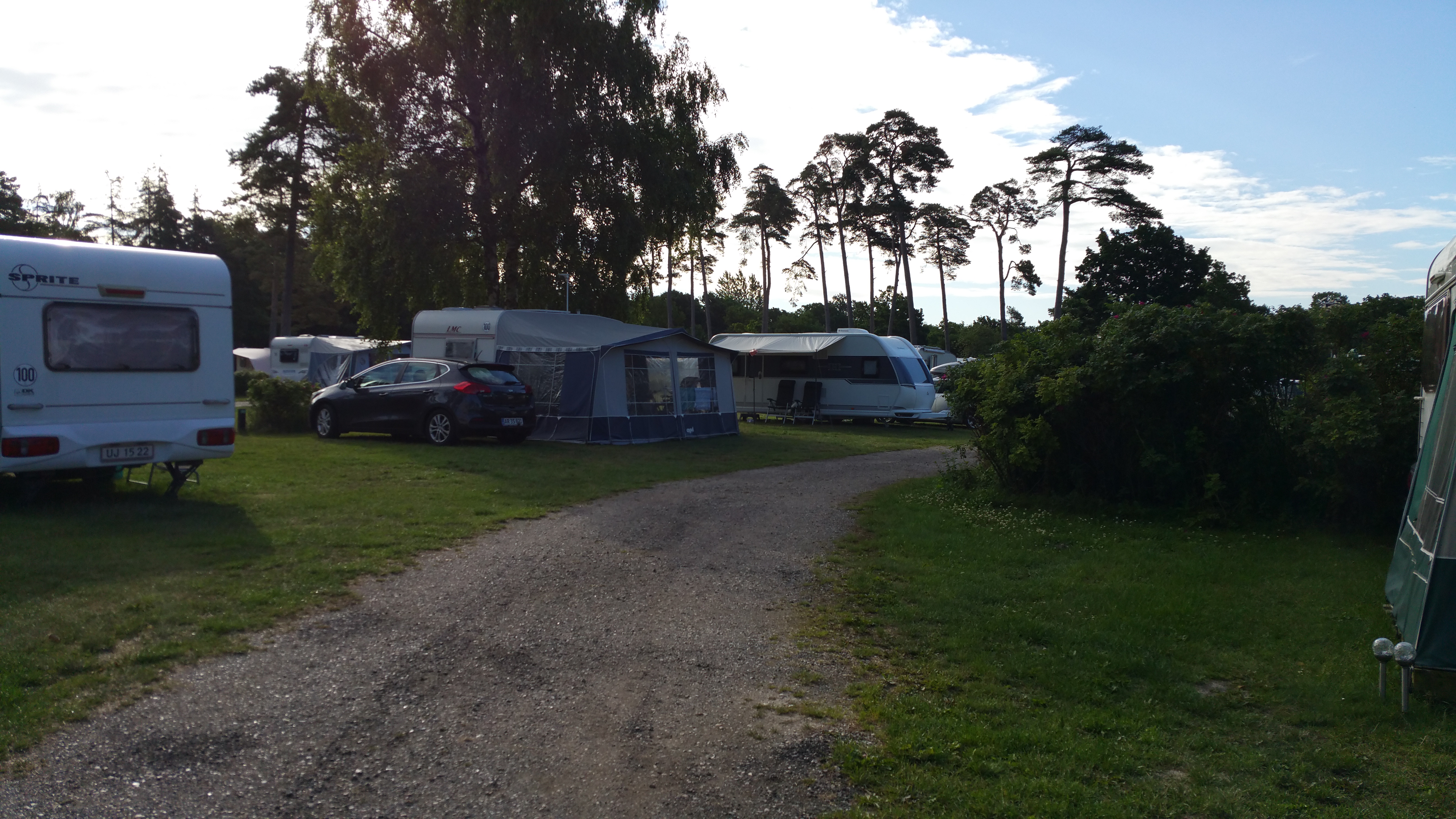 Leirintäalueen valitsimme ACSI:n appsista ja se oli Köge & Valloe Camping mikä oli kivenheiton päässä reitin varrelta. Alue sarjassa keskinkertainen ja soveltuu siihen yhden yön yöpymiseen. Henkilökunta oli ihan mukavaa. Saniteettitiloista toinen oli ok mutta toinen vain välttävä. Lisäksi alueella tuli vastaan muutamia henkilöitä jotka eivät selvästi olleet siellä majoittuvia vaan etelästä pohjoiseen pidempää retkeä tekeviä henkilöitä.