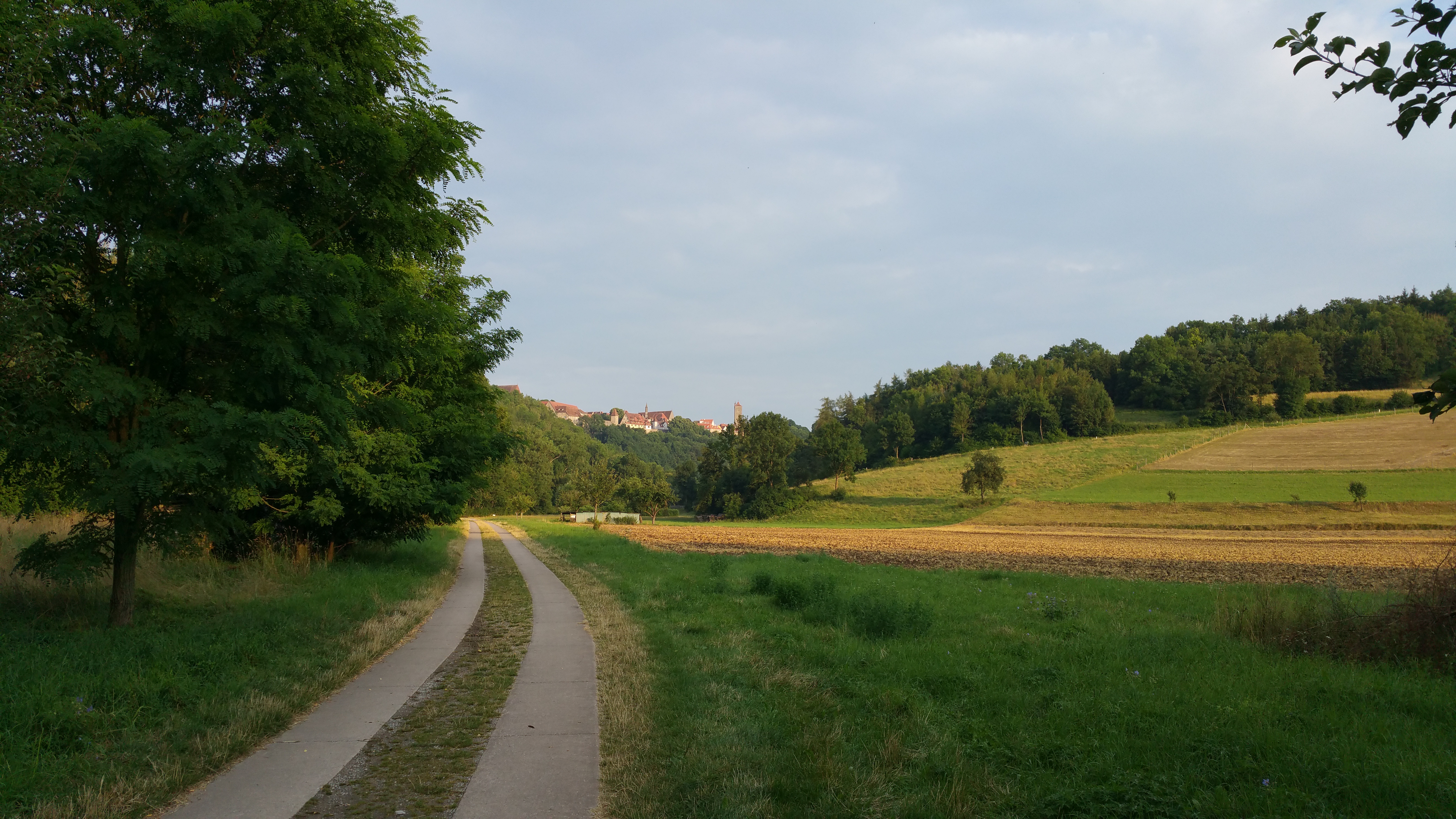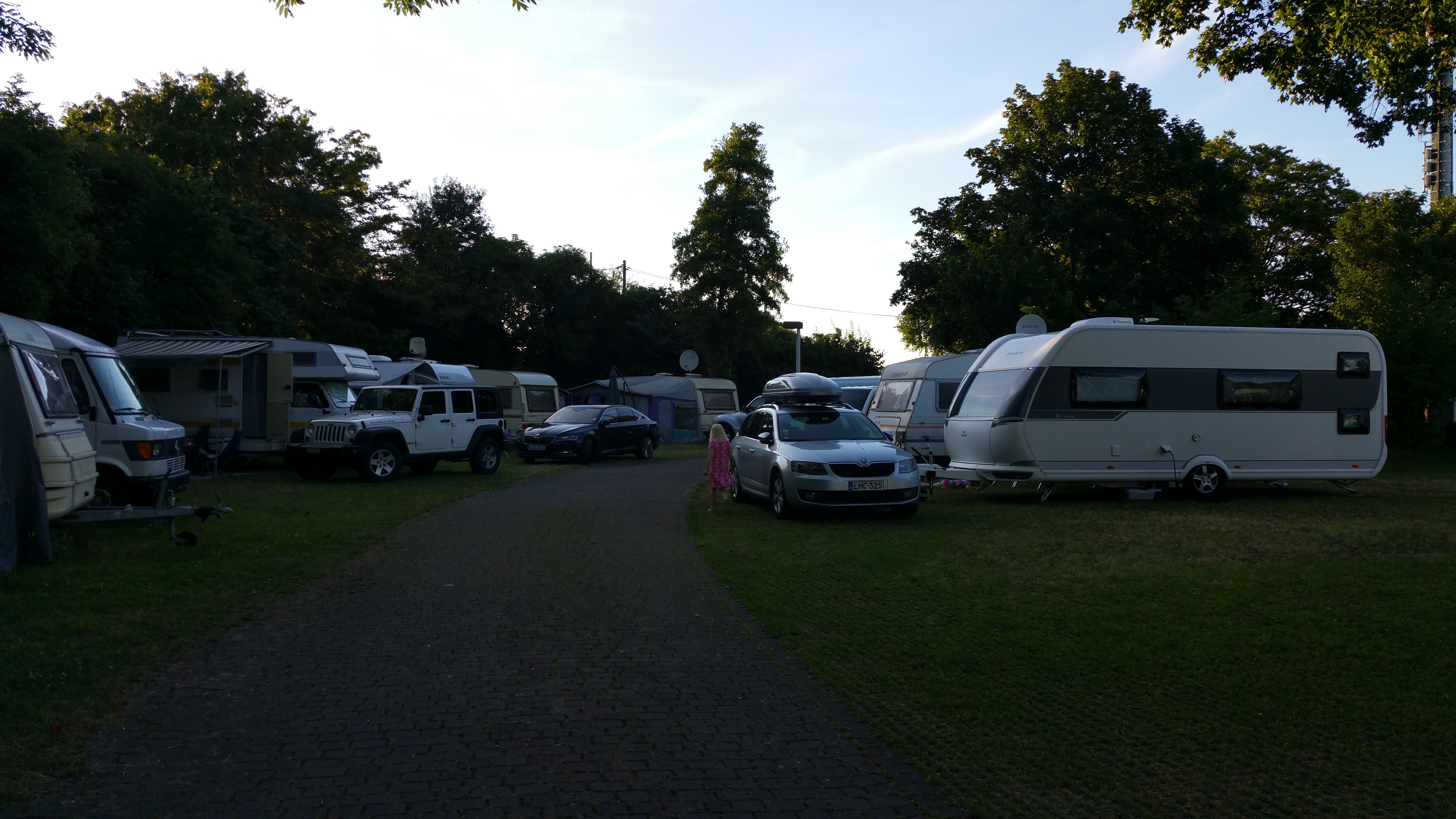 Naviin osoitteeksi suunniteltu yöpymisalue, Camping Tauber Idyll mistä saimmekin paikat oltuamme hyvissä ajoin liikenteessä. Kohtalaisen aikaisessa vaiheessa illalla alue oli jo tupaten täysi ja tunnelma tiivis. Tämä olikin alueen miinuspuoli koska karavaanit oli pakattu kylki kylkeen kiinni ja tunnelma oli turhan intiimi. Muutoin alueesta ei ole kuin positiivista sanottavaa: siisti, ystävällinen palvelu, hyvät, maisemat ja kävelymatkan päässä kaupungista.