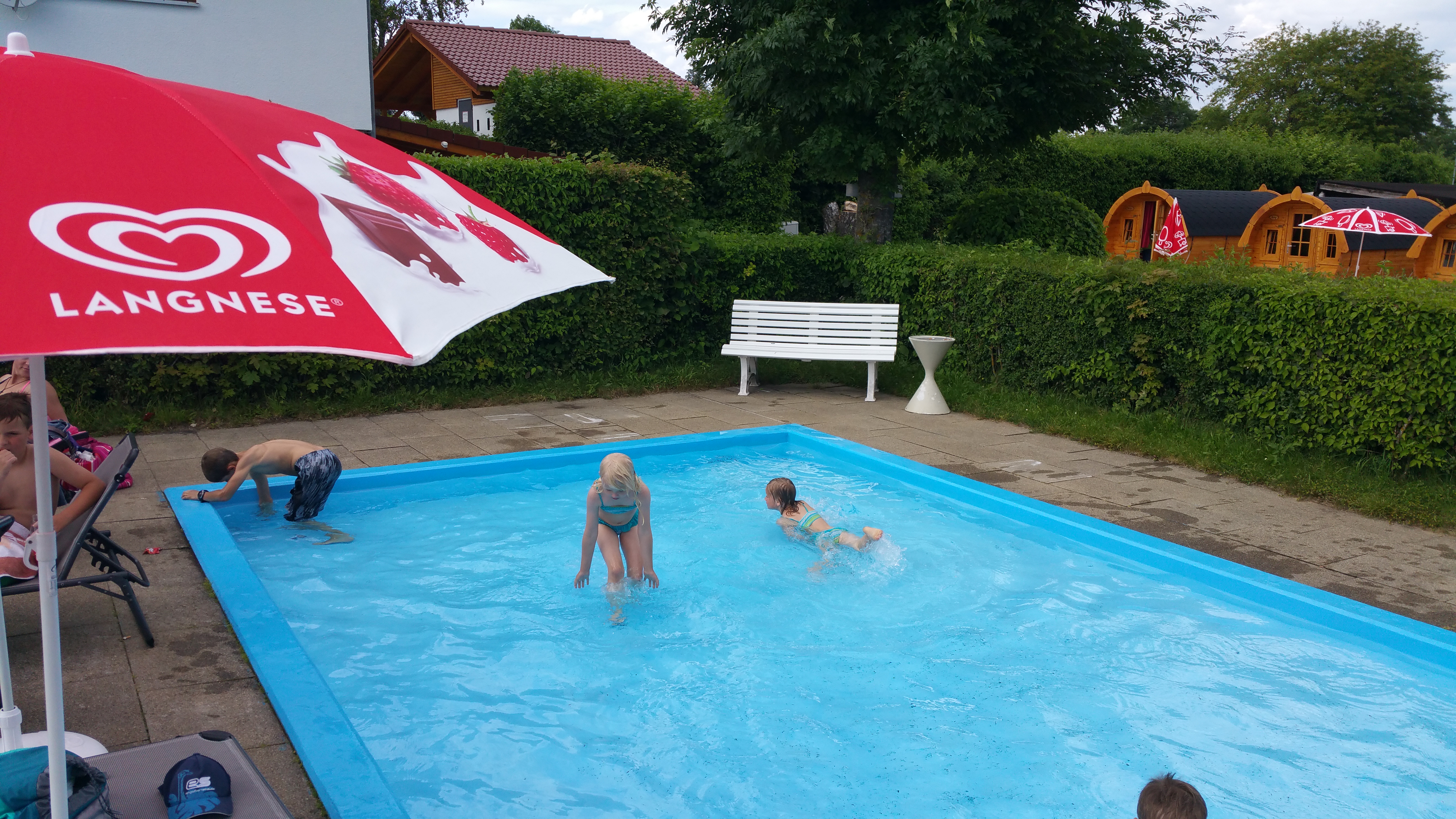 Stuttgartin vilinästä otettiin lyhyt siirtymä maaseudulle Camping Schüttehofin alueelle. Siirtymää pidensi hieman se, että bahnalla navin olettama ramppi oli remontissa suljettuna ja todellinen reitti kiersi hieman kauempaa. Alueelle mentiin taas melkoisten kinttupolkujen kautta mutta matka oli vaivanarvoinen sillä alue itsessään oli erinomainen löytö! Saimme vielä luksuspaikan suoraan allasalueen ja lasten leikkipaikan vierestä.