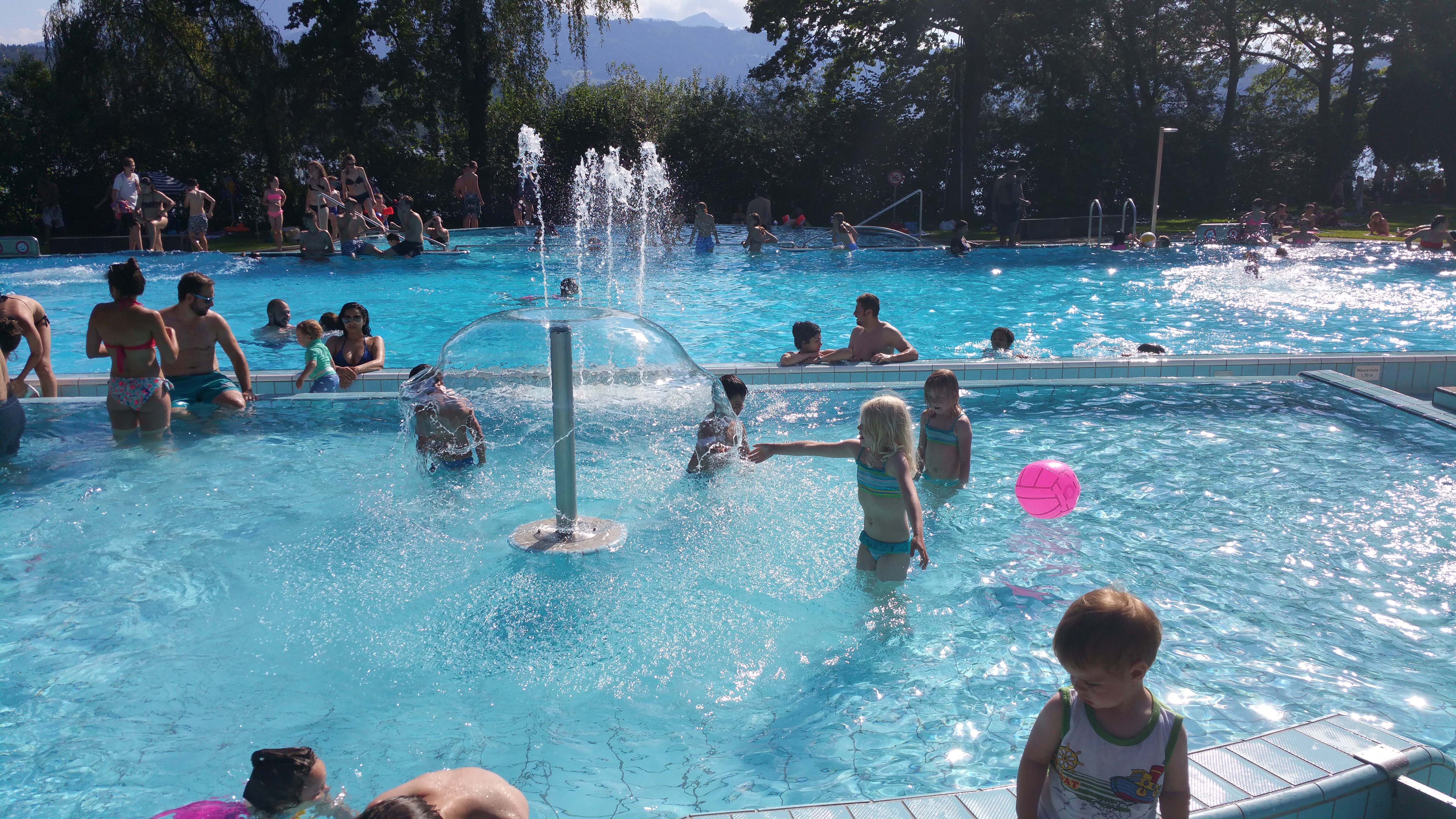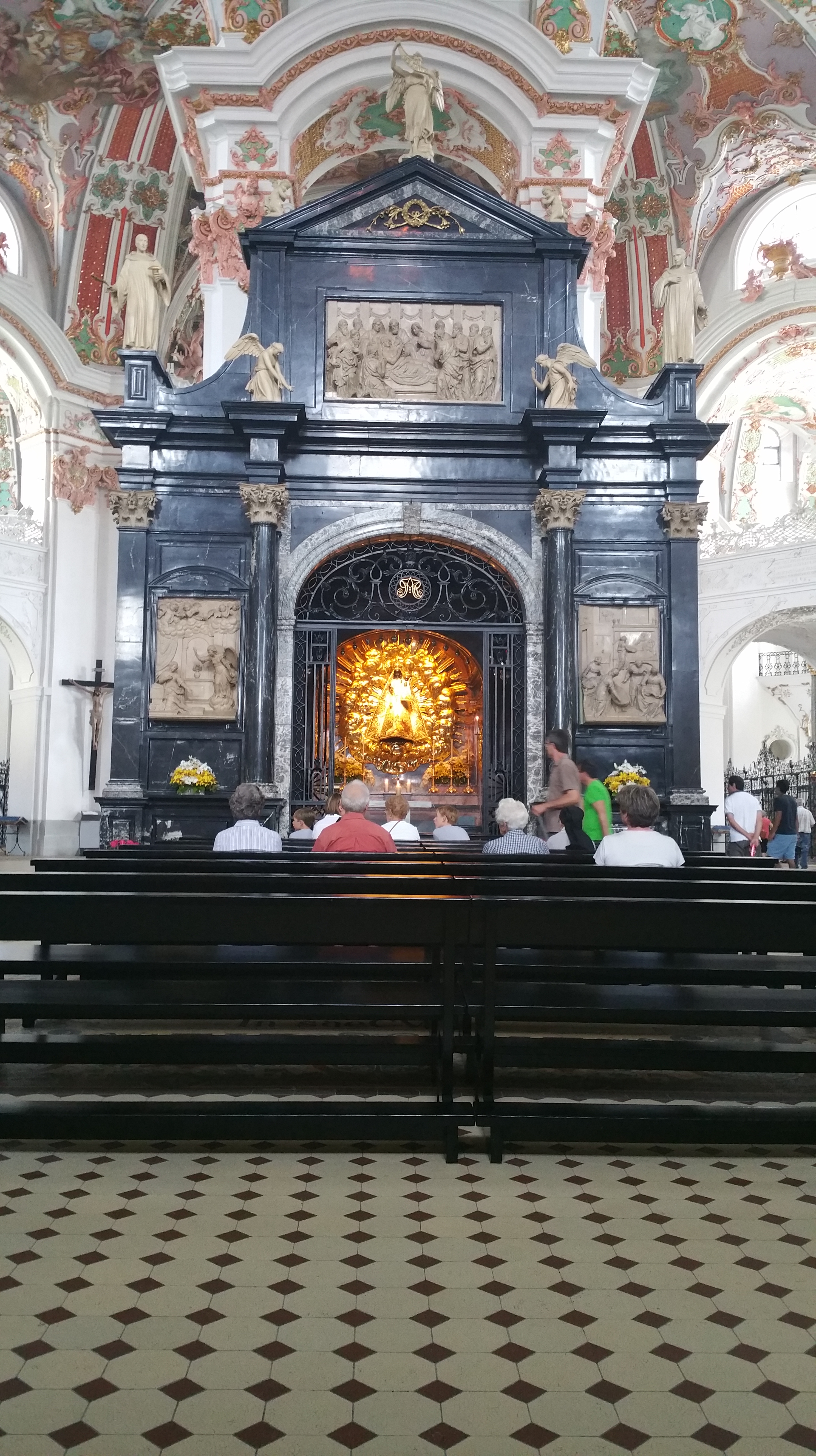 Luzernin toisen päivän aamupäivä vietettiin allasalueella missä oli huomattavan rauhallista viikonlopun kuhinaan verrattuna. Iltapäivästä suuntasimme veturilla kohti läheistä luostaria, Einsiedeln Abbeytä. Ensiharhailuilla kohde vaikutti jotenkin mitään sanomattomalta ja kiinni olevalta mutta sisätiloihin pääsyn jälkeen ääni kellossa muuttui.