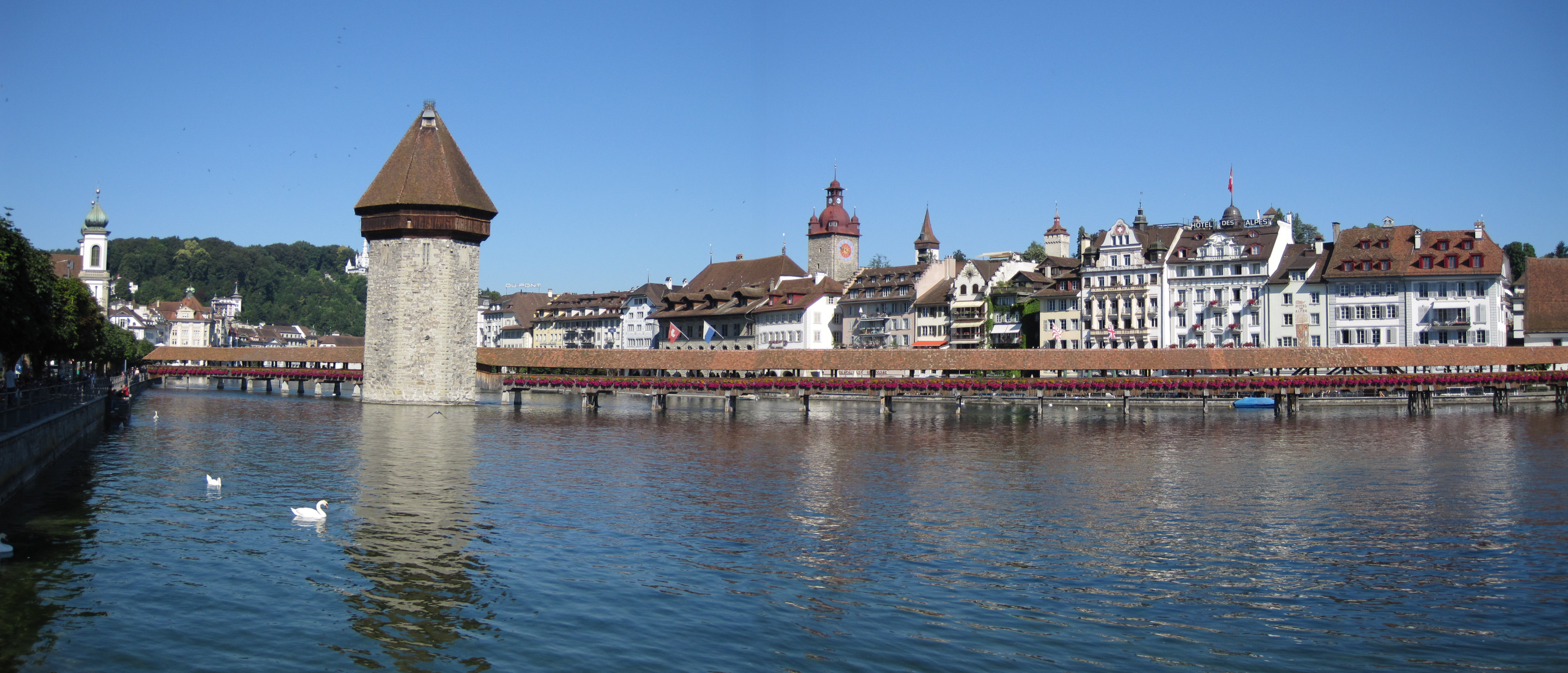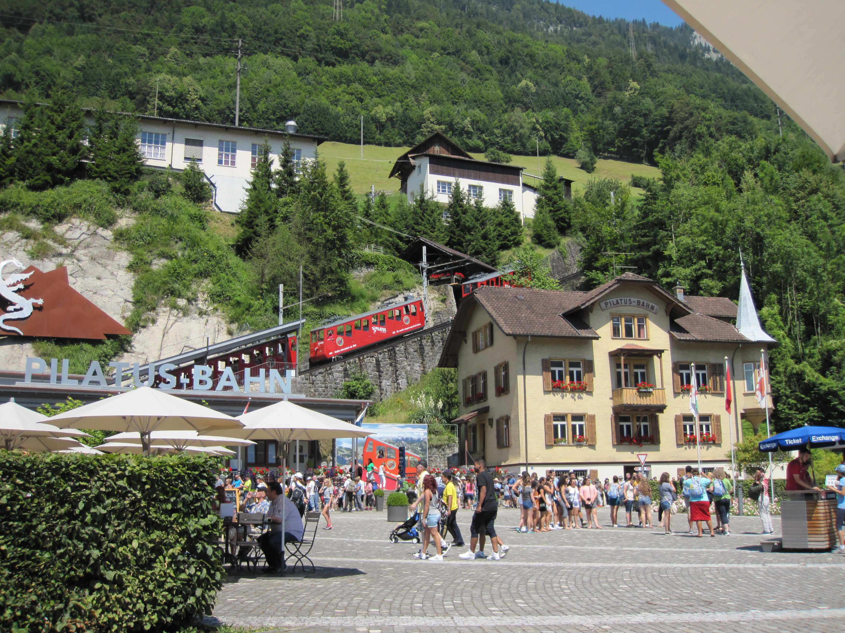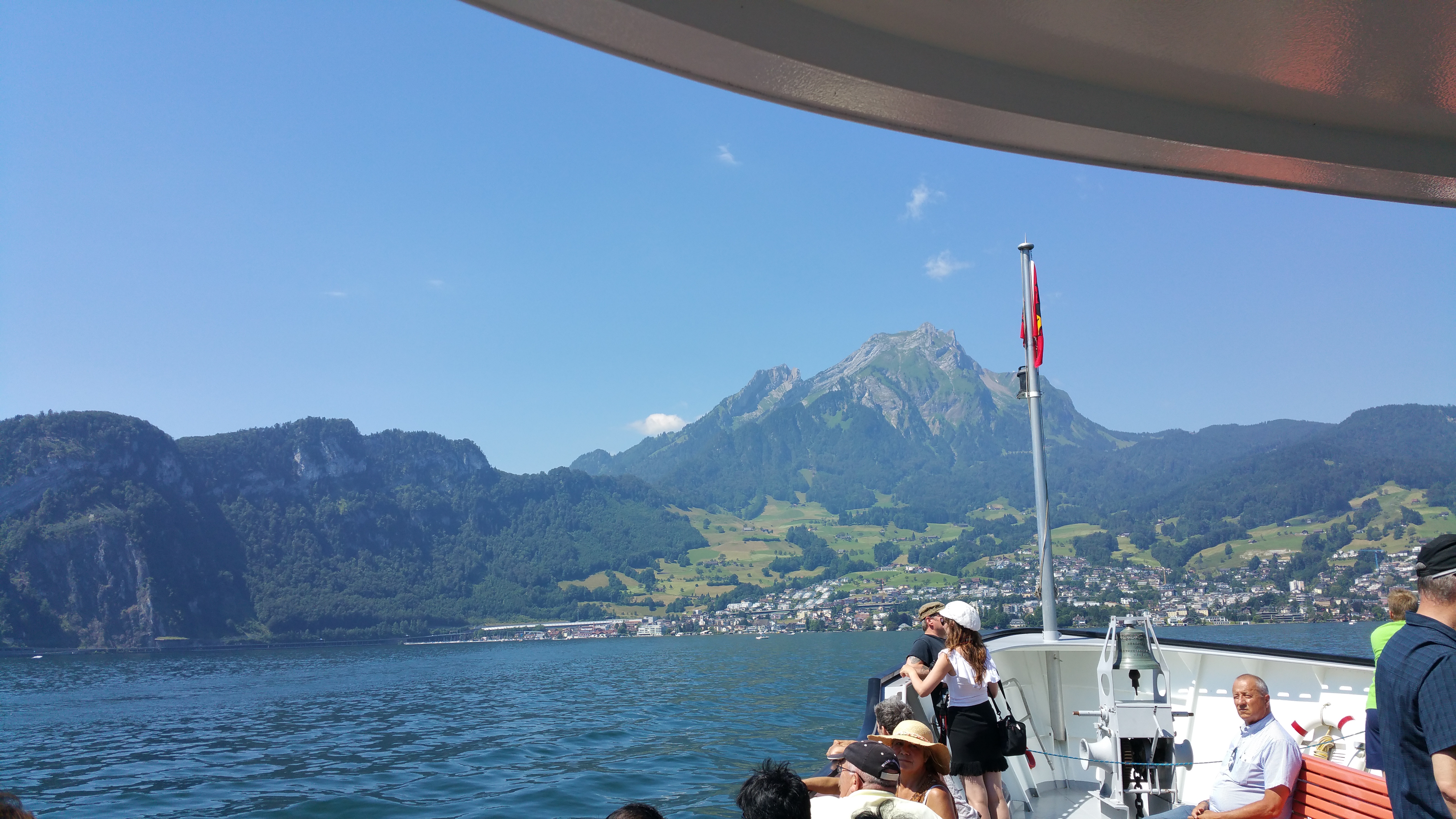 Luzernin ensimmäisen päivän retki kohdistui Luzernin kaupungin keskustaan ja sieltä käsin tehtyyn retkeen Mount Pilatukselle. Valitsimme Golden Round Tripin mikä sisälsi venematkan, hammasratasjunan ylös, gondoolikyydit (2 kpl) alas sekä bussimatkan takaisin keskustaan.