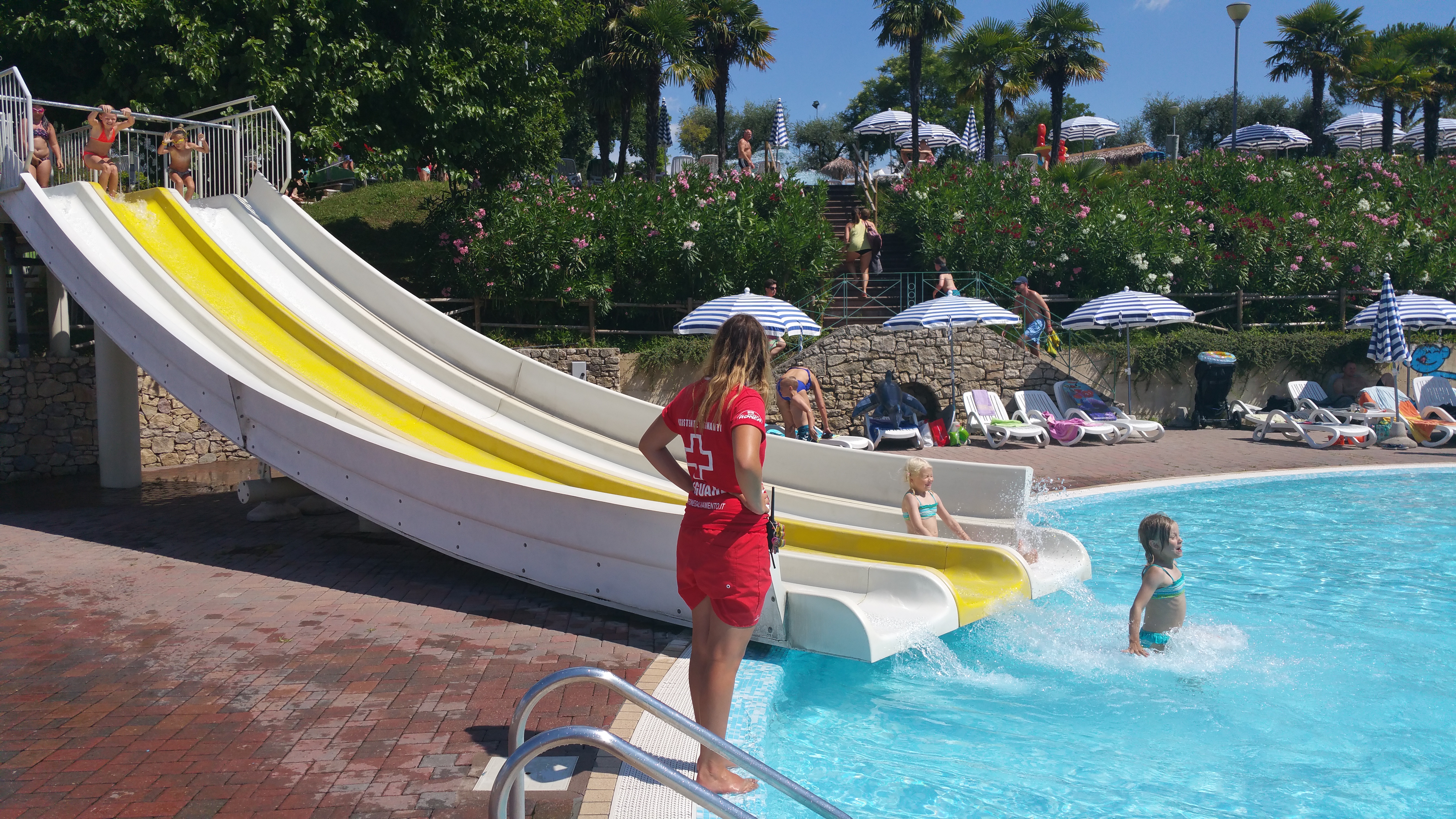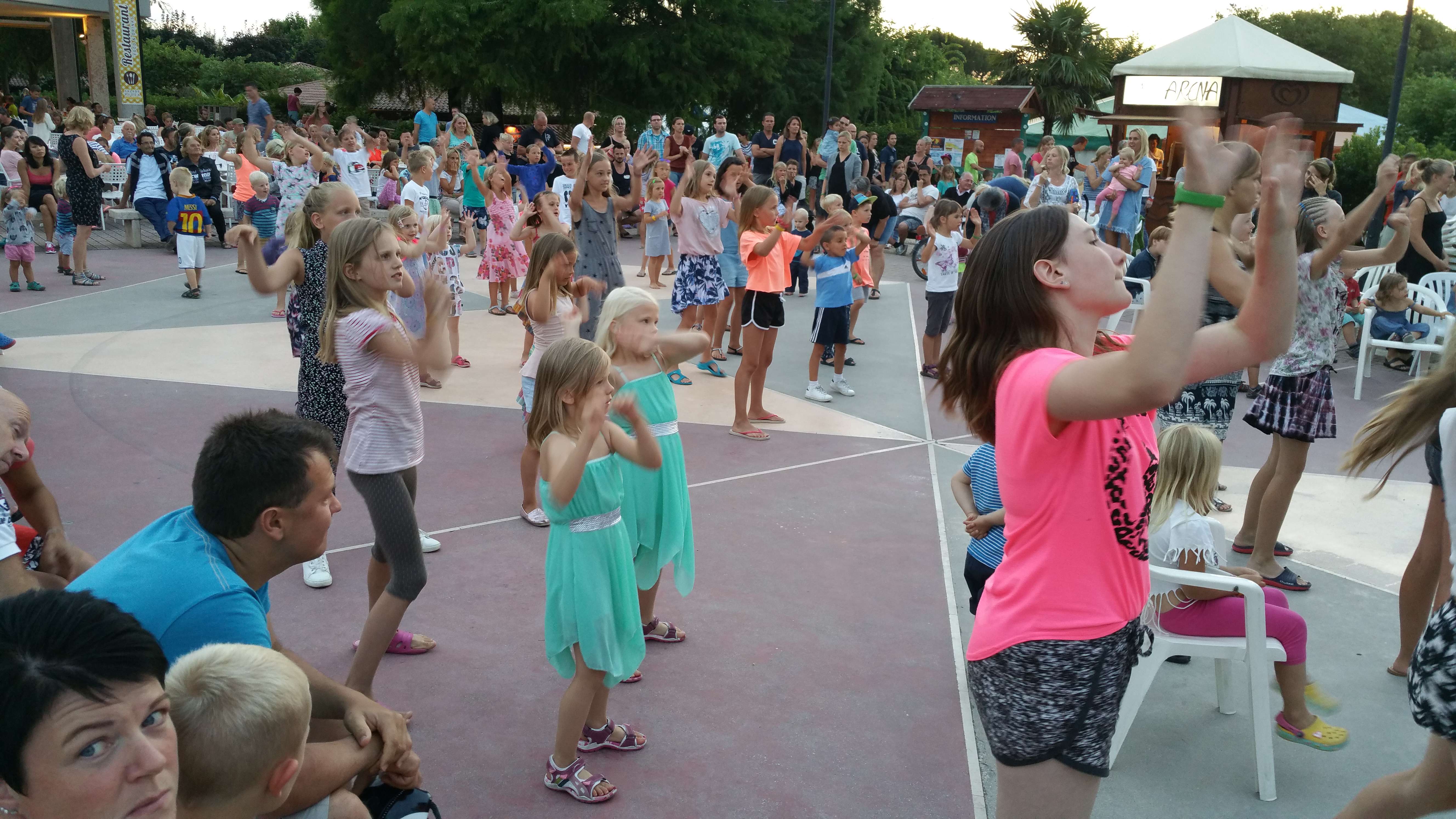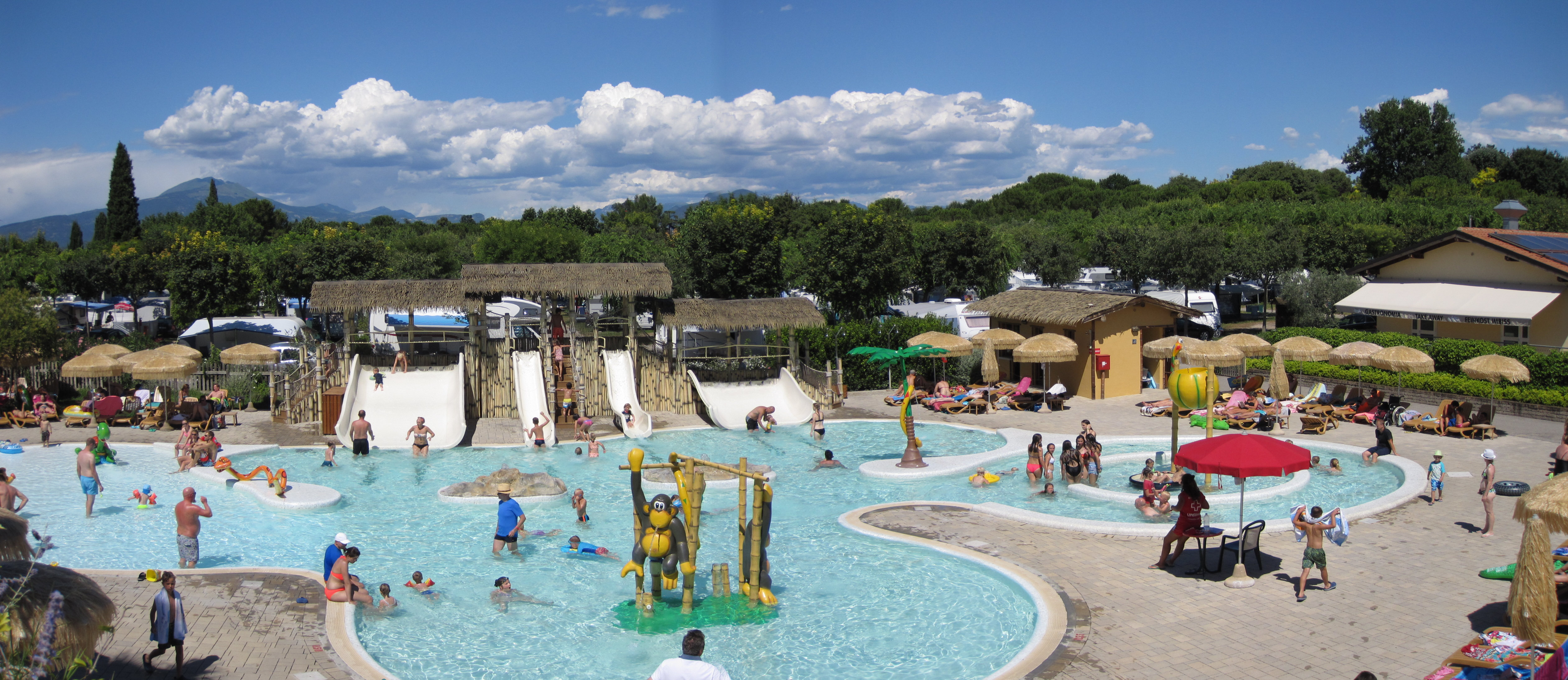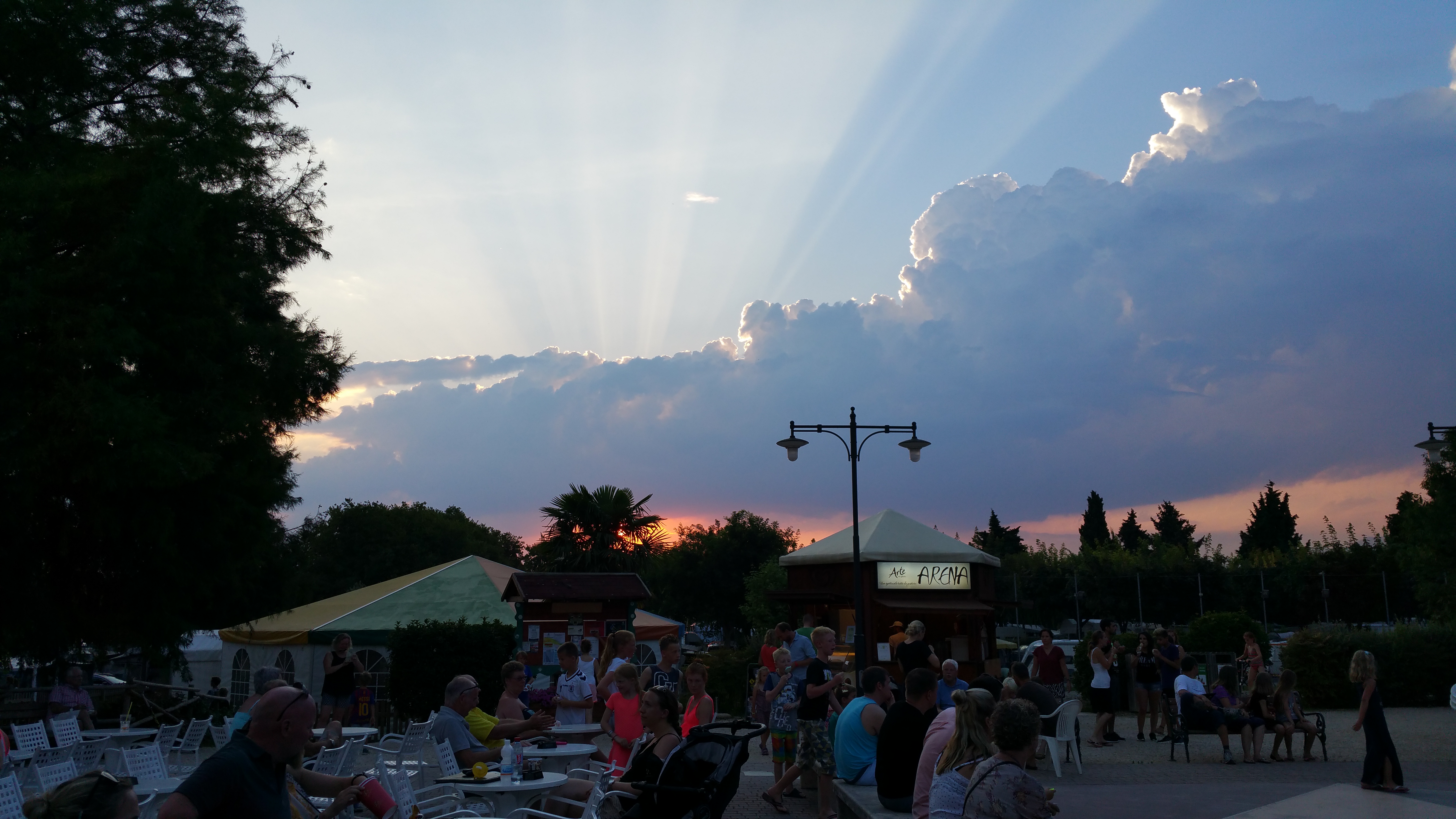 Juttelimmme edelliseltä kesältä tutun ykköstarjoilijamme Thomaksen kanssa siitä paljonko alueella on maksimissaan väkeä. High seasonin parhaaseen aikaan alueella voi olla jopa 7500 henkeä. Ravintola tarjoilee 1000 – 1200 pizzaa päivässä ja siihen take away pizzat päälle. Ja uskomatonta kyllä alueella ei mikään töki vaan kapasiteetti riittää (mm. vessoihin tai suihkuun ei tarvinnut jonottaa kertaakaan ja lämmin vesi riitti aina). Lähtöpäivänä näki että heinäkuun puolivälin jälkeen sesonkihuippu oli todenteolla alkanut sillä vapaat paikat alkoivat olemaan jo kortilla.