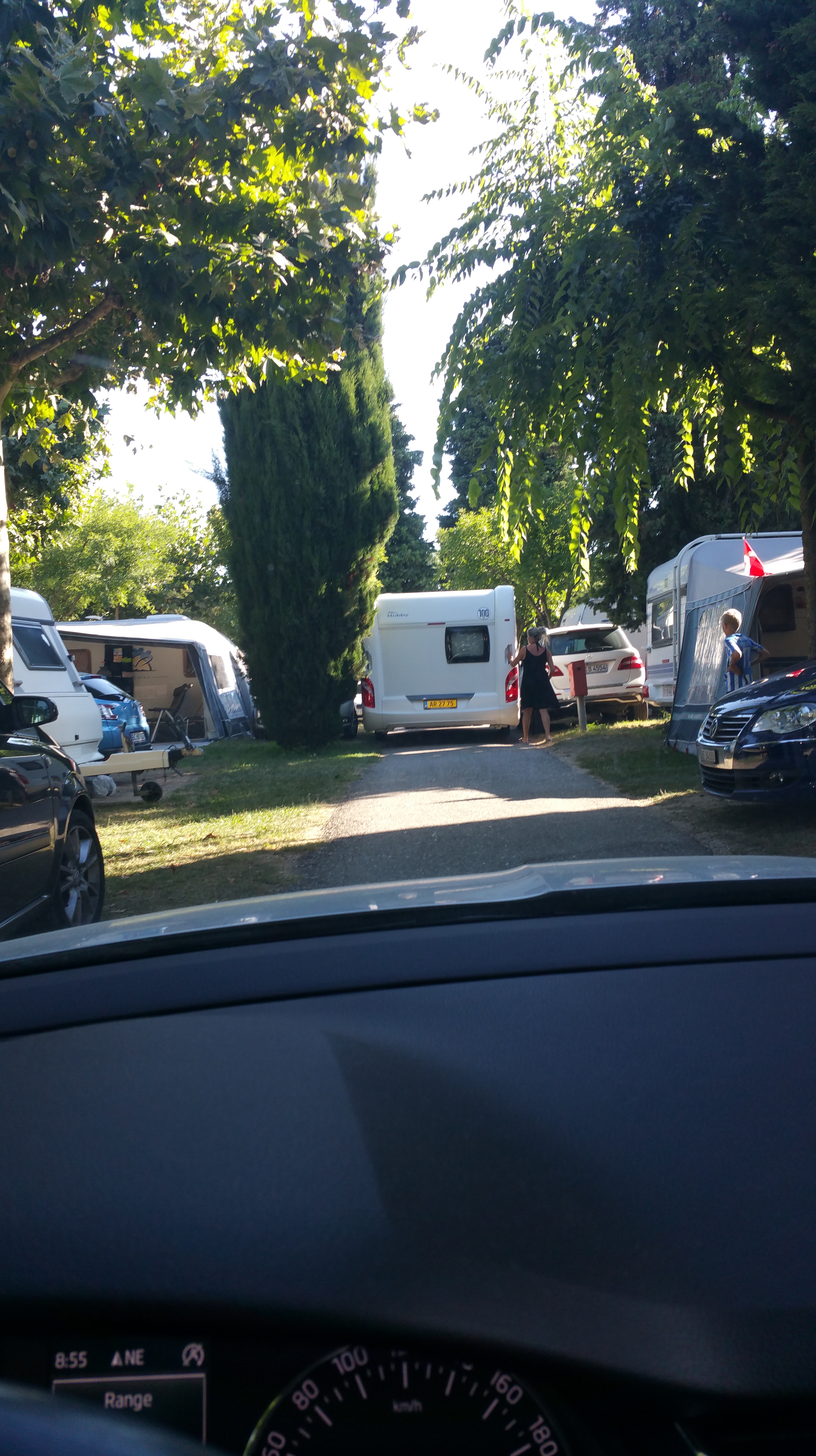 Lienzissä ajoimme kohti leirintäaluetta navigaattorin ohjeiden mukaisesti ja lopussa myös kämppärin kylttien mukaan. Seurauksella että löysimme itsemme totaalisesta umpikujasta edessämme tietyömaa ja tie poikki! Taas niitä kertoja jolloin kiittelin moveria kun piti ottaa vaunu irti ja kääntää yhdistelmä tulosuuntaan.