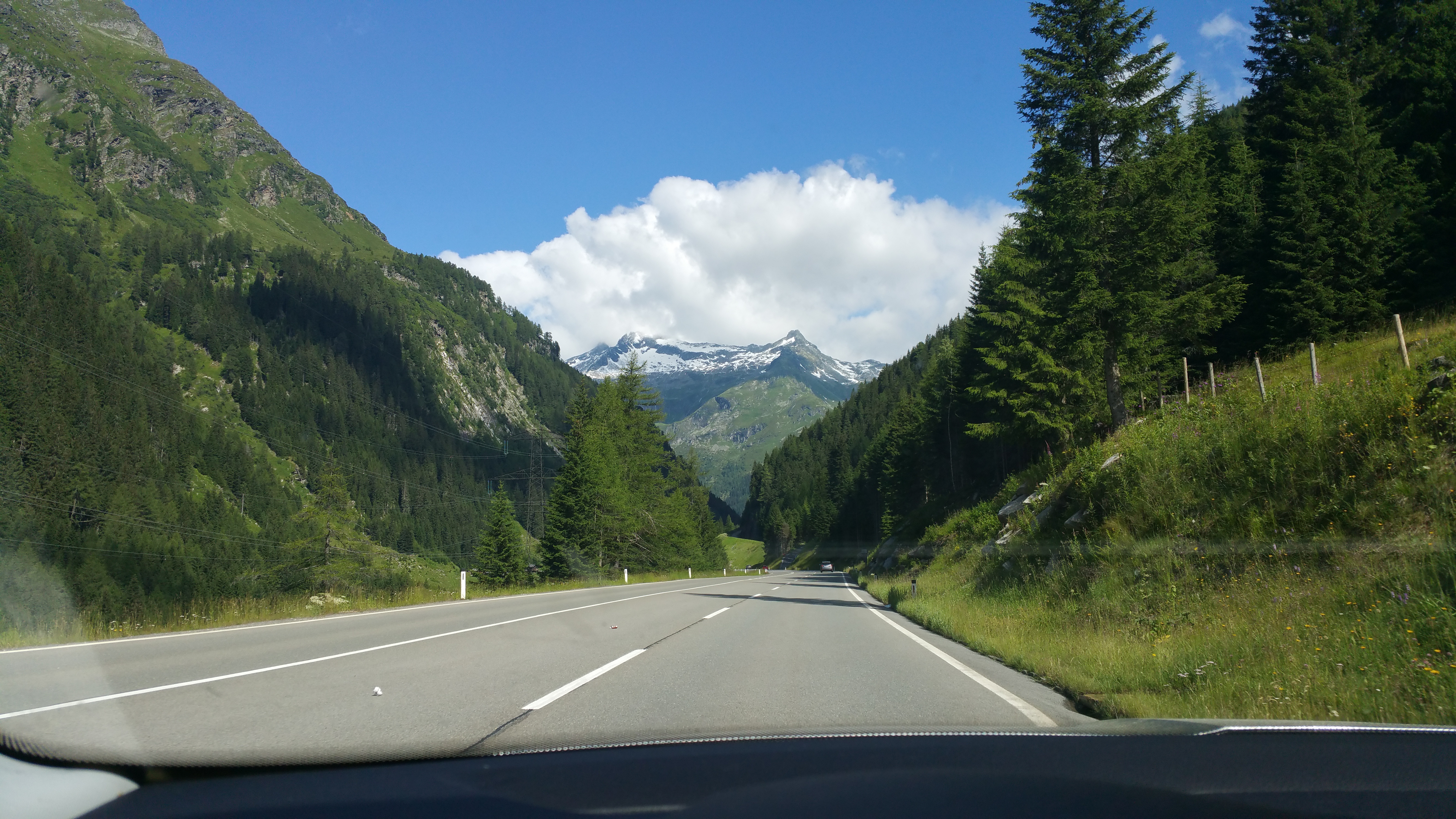 Lienzistä matka jatkui lyhyellä siirtymällä. Näin matkan päällä suunniteltu reitti oli todellinen helmi sillä ajoimme Felberstauernstrassen kautta. Kaunista maisemaa ja kävimme hieman yli 1,6 km korkeudessa. Tämä siis vaunu perässä. Vaikka yhdistelmä eteni kiltisti niin Skodasta huomasi jo hapen vähyyden näissä korkeuksissa. Mutta helposti vaunu perässä ajettava pätkä korkeudesta ja noin 9 % noususta / laskusta huolimatta.