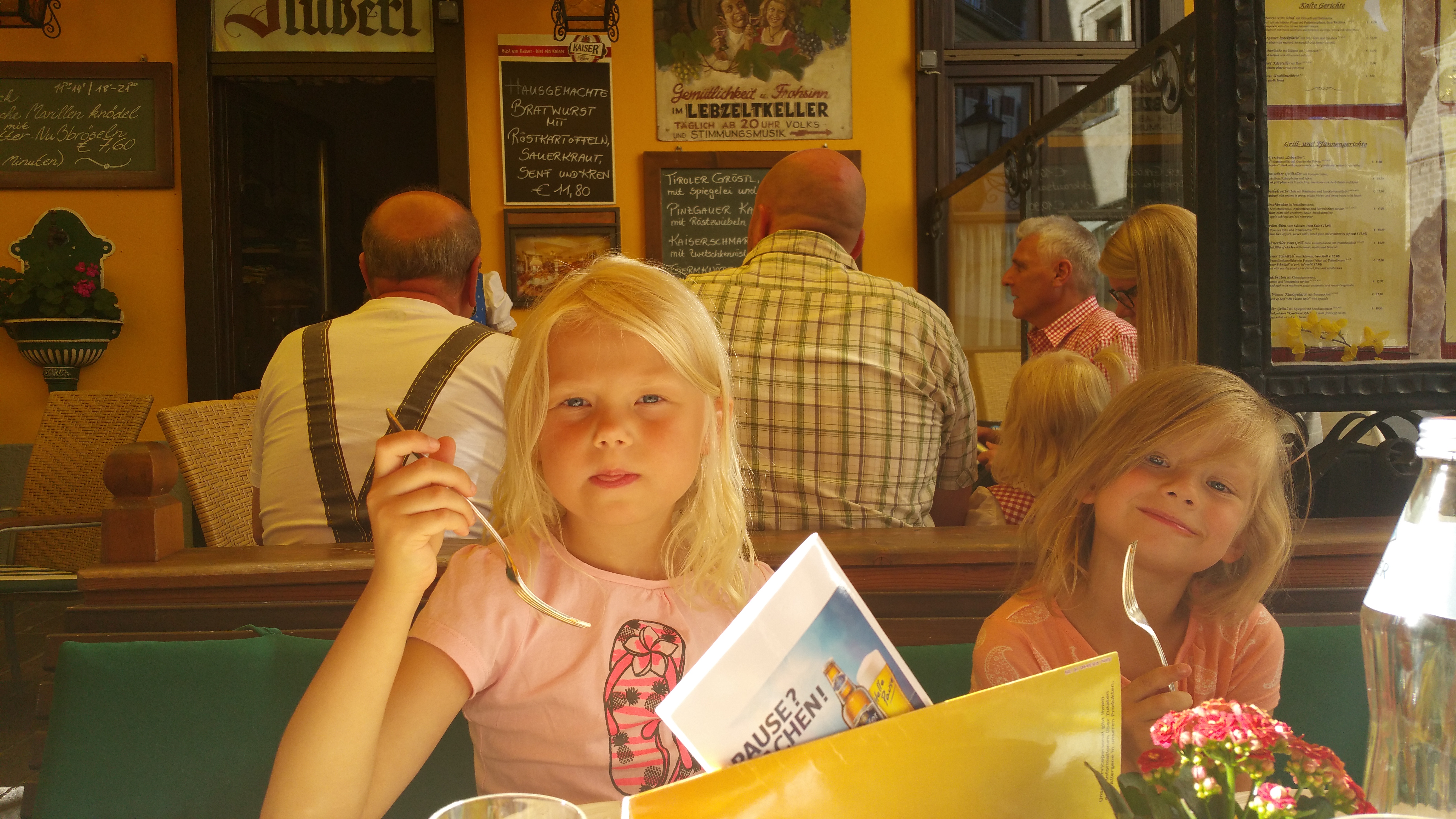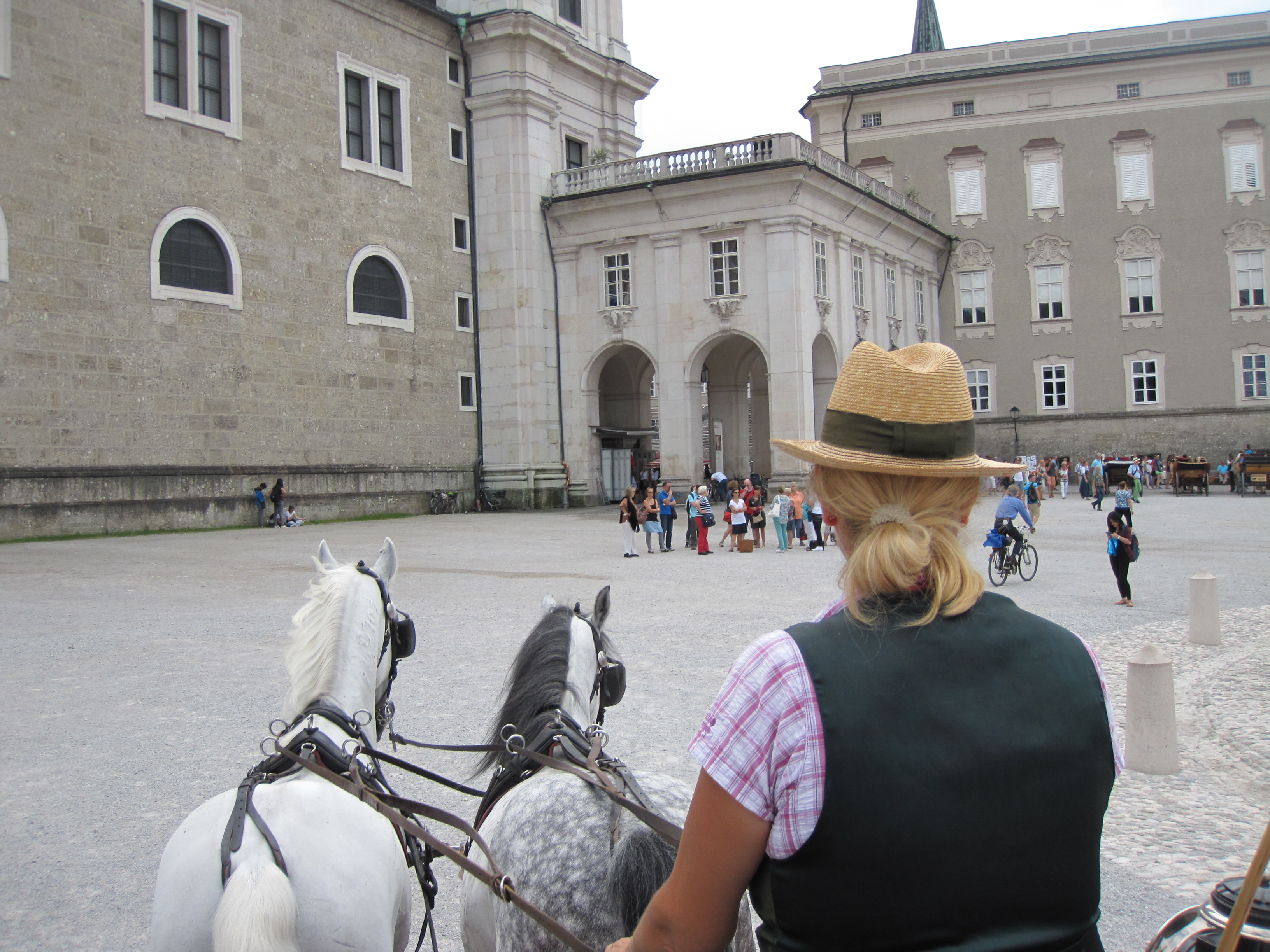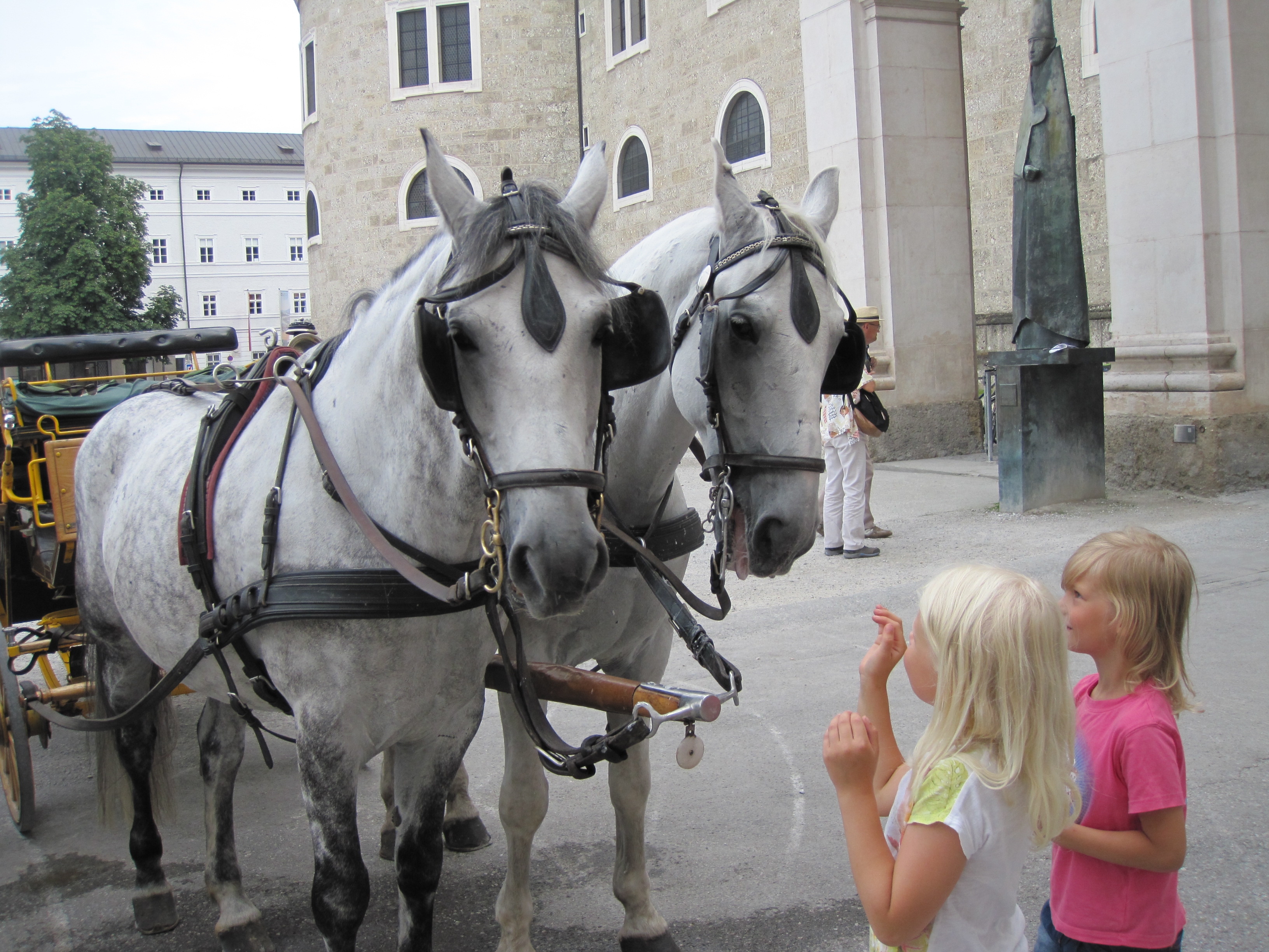Salzburgkortit toimivat myös lippuina julkisessa liikenteessä. Liikennevälineistä puheenollen tyttöjen vaatimuksesta piti testata heppakyyti. Alla kuvia tuolta ajelulta ja Salzburgista muutoinkin.