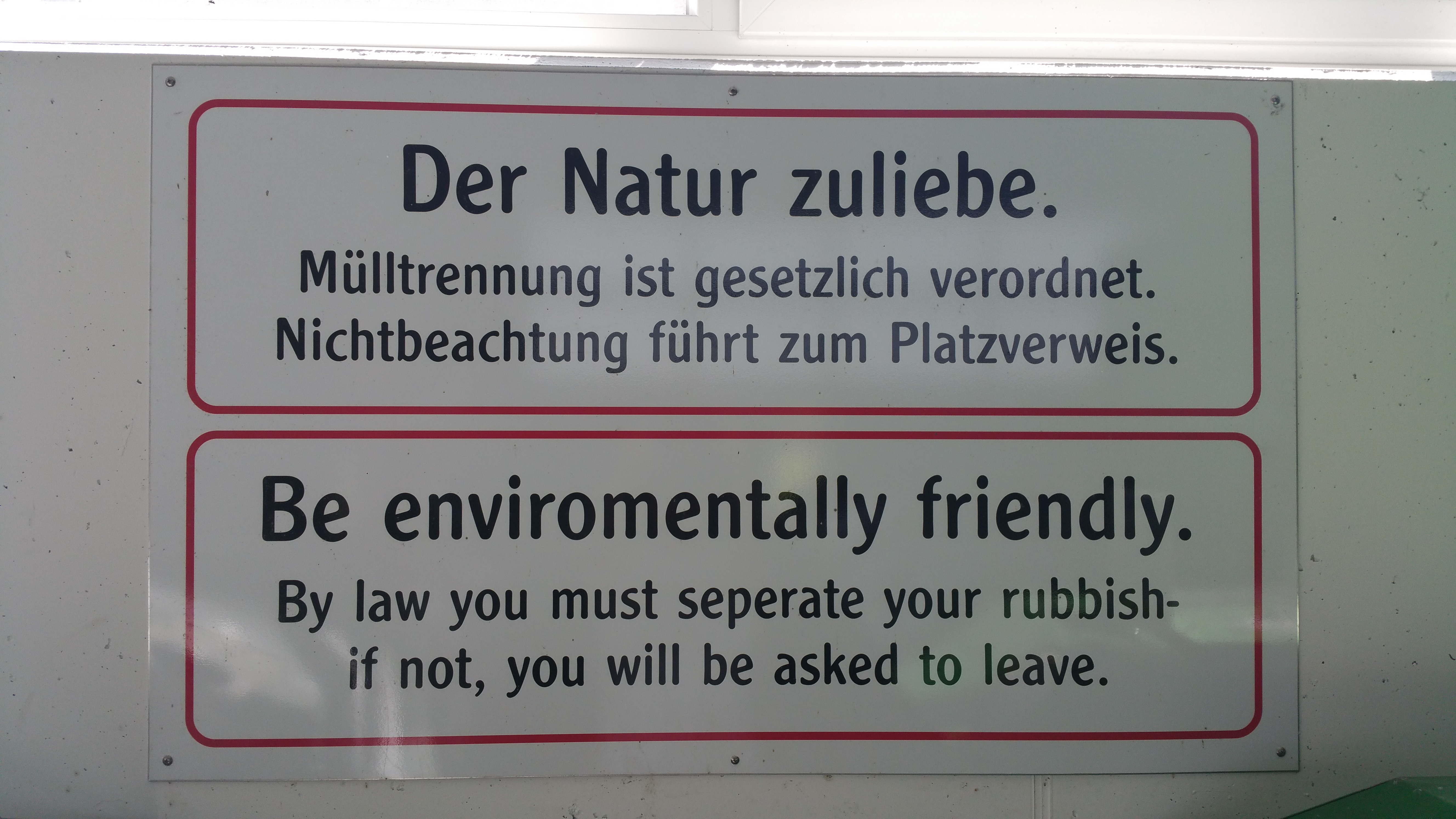 Niin yksi Itävallan erikoisuus oli tiukka kierrätys leirintäalueillakin. Lienzissä ei ollut lainkaan (!) sekajäteastiaa. Täällä se oli hetken hakusessa ennen kuin löytyi (liian lähellä ja ennen kaikkea liian iso). Vähän hankalaa näin vaunun kanssa 100 % kierrättäminen vaikka kannatettava ajatus onkin…