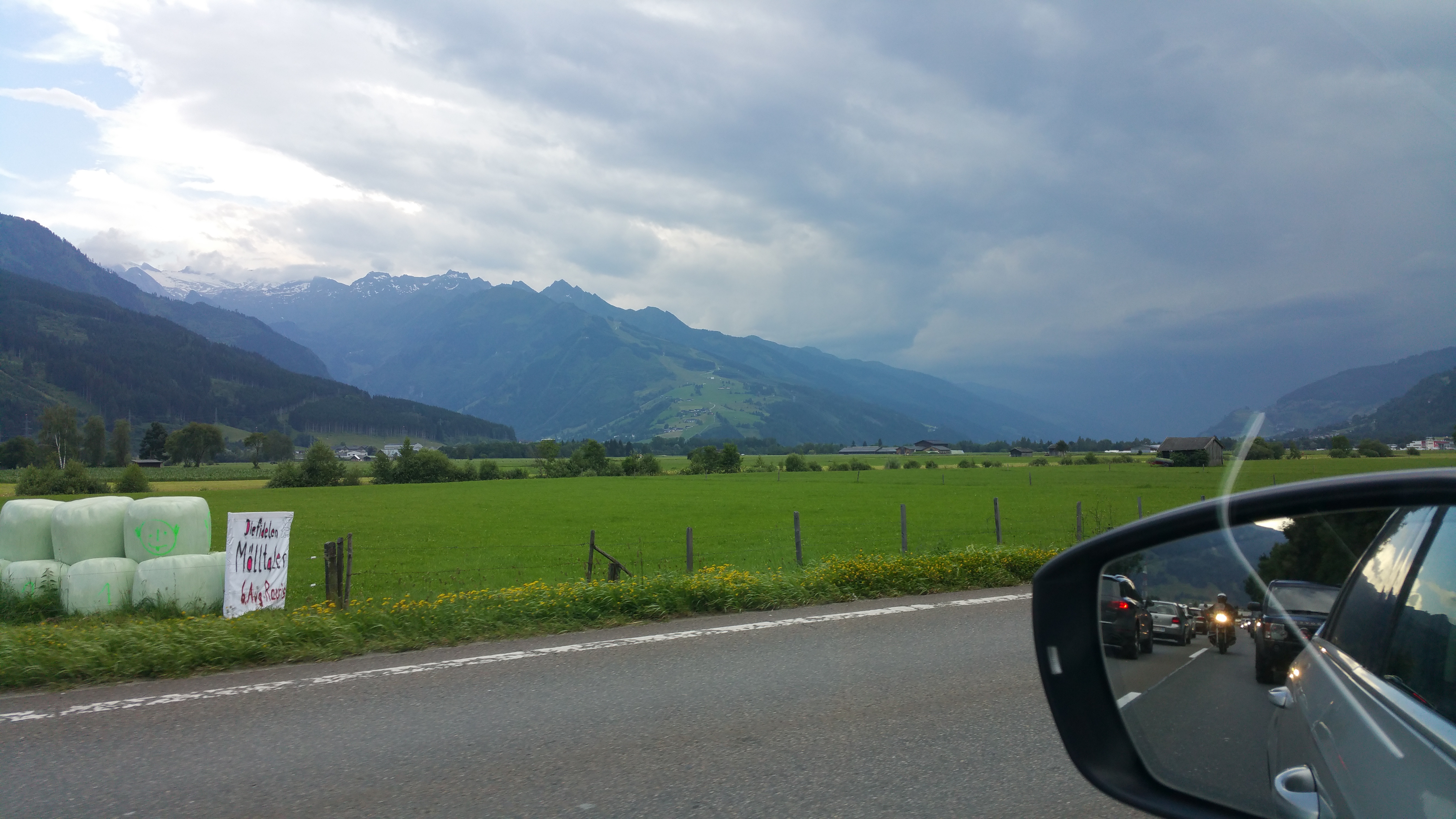 Loppupäivästä kävimme ruokaostoksilla Zell am Seessä. Jo menomatkalla solan maisemassa näkyi ”Independencedaymäisiä piirteitä” eikä tarvinnut olla kummoinen ennustaja arvatakseen että kohta muuten rytisee. Ehdimme lertsalle ensimmäisten pisaroiden tippuessa taivaalta. Kahden hengen saumattomana tiimityönä katos ja kalusteet oli hetkessä purettu ja nipussa ennen kuin varsinainen ukkosmyräkkä alkoi. Parin paikan päässä olleen vaunun porukat eivät olleet paikalla ja hetken päästä markiisi heilui vaununkyljestä kohti taivasta. Onneksi vauriot jäivät heillä ilmeisen minimaalisiksi. Alpeilla nuo ukkoset tulevat nopeasti ja ovat voimakkuudeltaan usein kovia.
