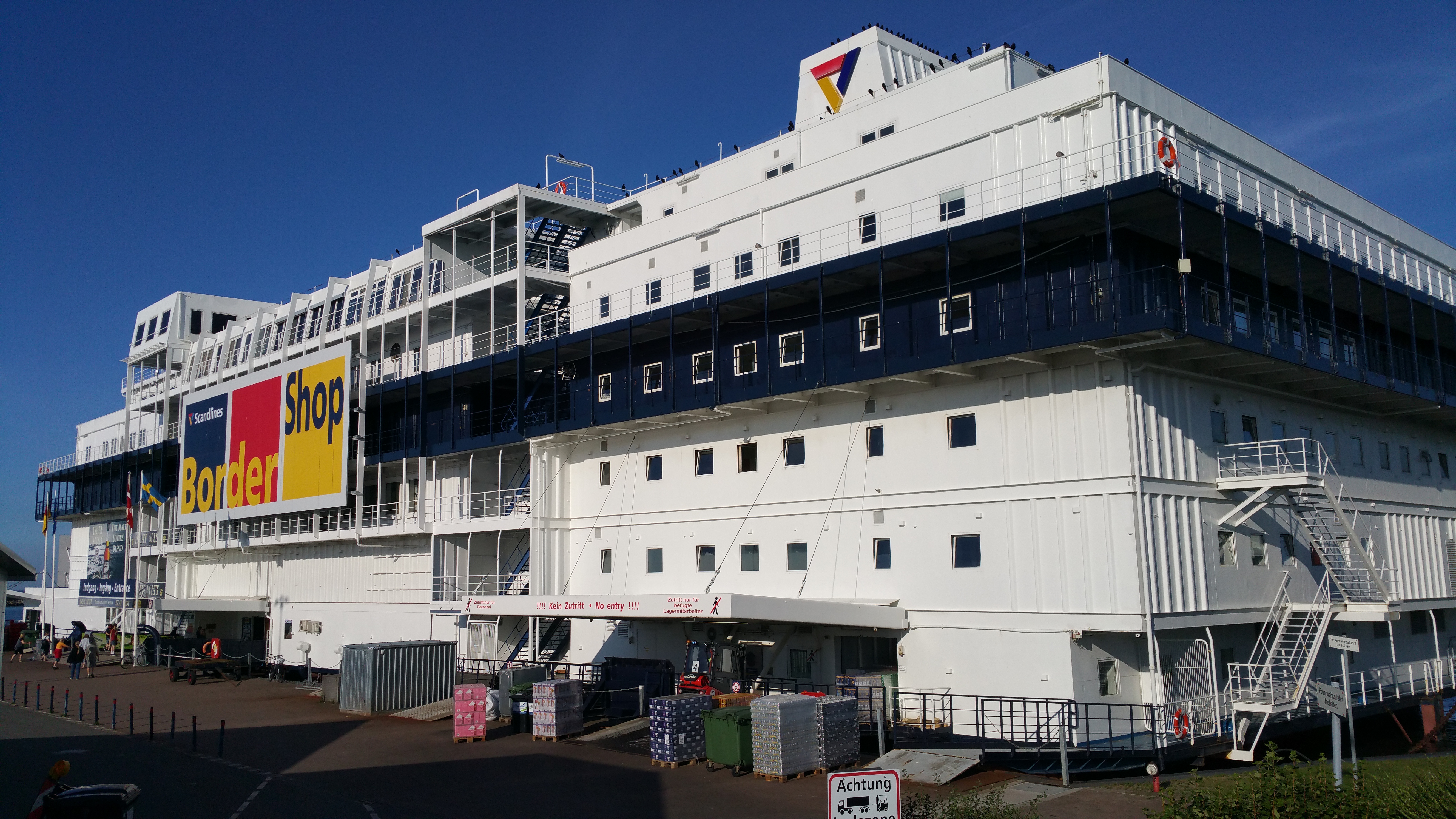 Puttgardenissa tuli käytyä viereisessä Bordershopissa. Ensi alkuun vaikutti että ”eihän nää hinnat mitään edullisia ole” ennen kuin tajusi että reilun 20 € hinta sisälsikin 3 lavaa olutta yhden sijasta 😀