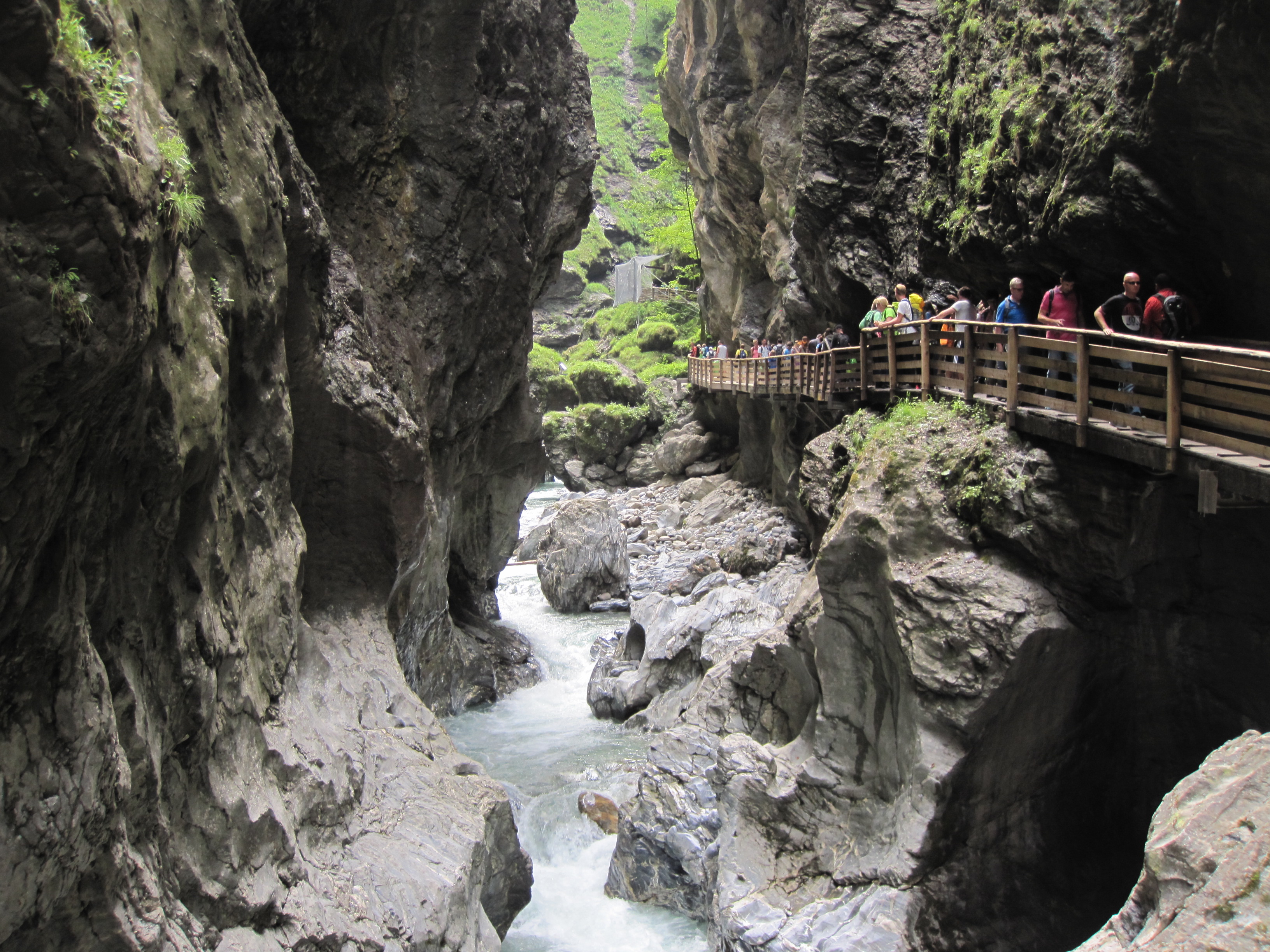 Toisena päivänä oli vuorossa luontoretki kohteena Liechtensteinklamm. Olimme pahimman ruuhkahuipun aikaan liikkeellä mutta parkkipaikka-arvonnassa tuli onneksi pitkä tikku kouraan. Alueelle saapuessamme edellä oleva auto sai nimittäin järkkäreiltä komennuksen kauimmaiselle parkkipaikalle, meille käsky jatkaa loppuun asti parkkipaikalle sisääntuloportin viereen. Ero kävelymatkassa oli huomattava.