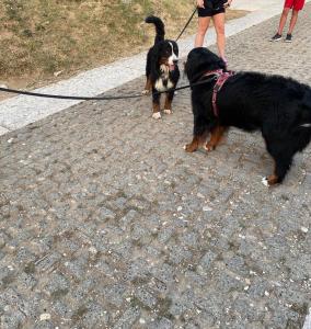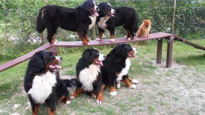 Piani di Clodialla meidän leiripaikan kujalla oli hyvä edustus bernejä. Ronjan lisäksi oli kaksi saksalaista urosberniä, joista nuorempi 7 kk kuvassa, juuri uimasta tulleena. Bernejä löytyy alueen nettisivuiltakin mistä toinen kuva on lainattu. Kuva otettu leirintäalueen toiselta agility-radalta.